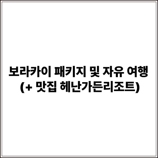 보라카이 패키지 여행 코스에 대해 알아보시려면, 여행 기간과 선호하는 스타일에 따라 다양한 옵션을 고려하실 수 있습니다. 아래에 대표적인 패키지 유형과 추천 일정을 정리해 드리겠습니다.